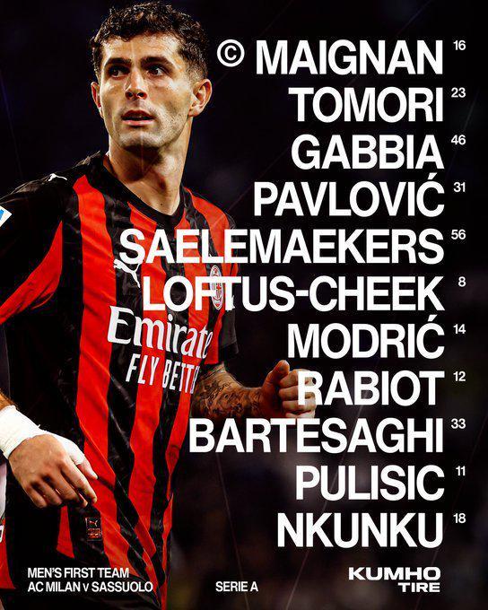 北京时间12月14日19:30,意甲第15轮,AC米兰主场迎战萨索洛。红黑军团公布此役首发,“美队”、恩昆库双剑出击,魔笛坐镇中场。 AC米兰首发(352):迈尼昂/托莫里、加比亚、斯特拉希尼亚·帕夫洛维奇/萨勒马克斯、洛夫特斯-奇克、莫德里奇、拉比奥、巴尔泰萨吉/普利希奇、恩昆库 替补:泰拉恰诺、埃斯图皮尼安、萨穆埃莱·里奇、德温特、阿特卡梅、奥多古、亚沙里、皮塔雷拉